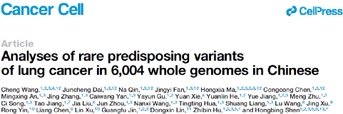 Wang et al., Analyses of rare predisposing variants of lung cancer in 6,004 whole genomes in Chinese, Cancer Cell (2022).DOI:https://doi.org/10.1016/j.ccell.2022.08.013